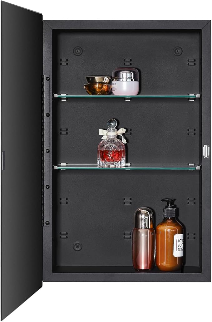 - 【Material】The medicine cabinet is made of durable cold-rolled steel with matte black powder coated, which ensure long-lasting use.