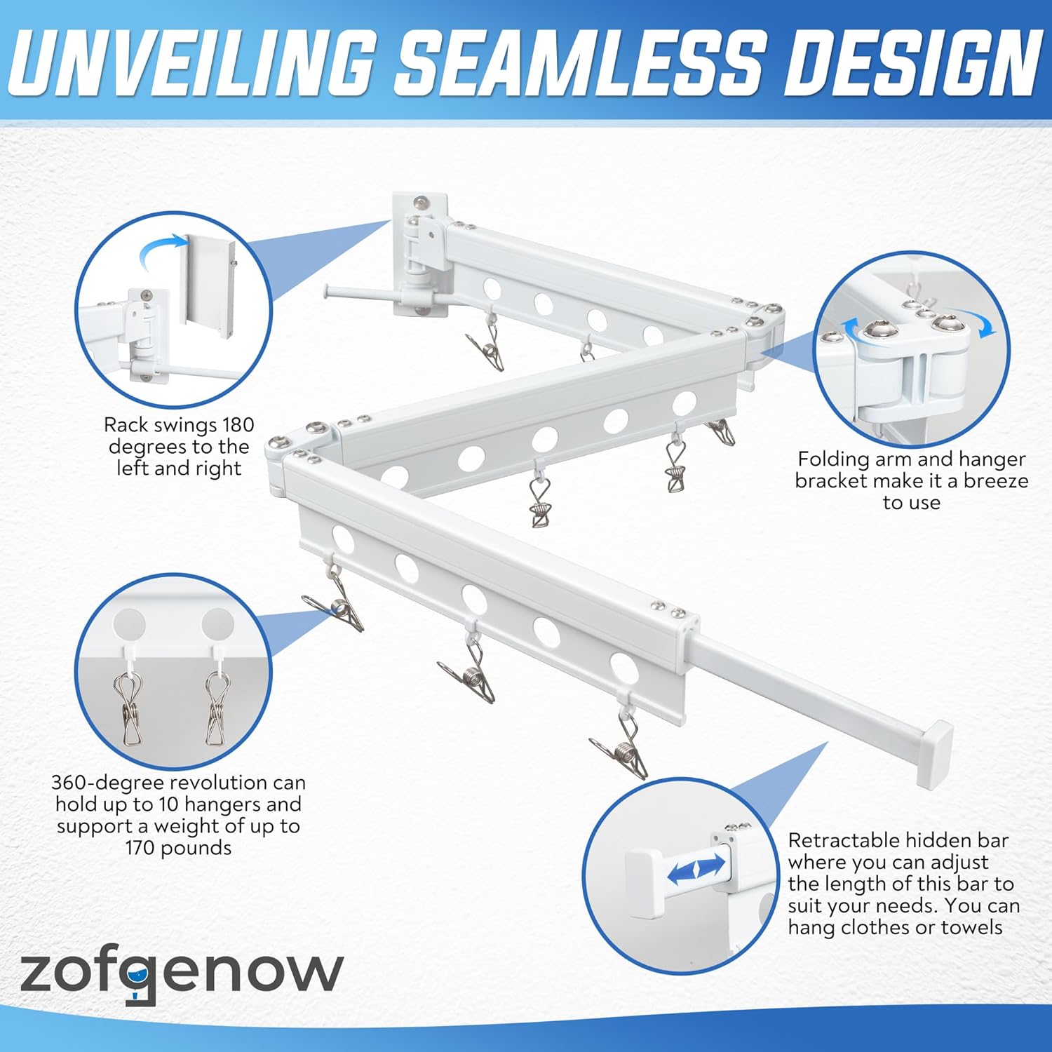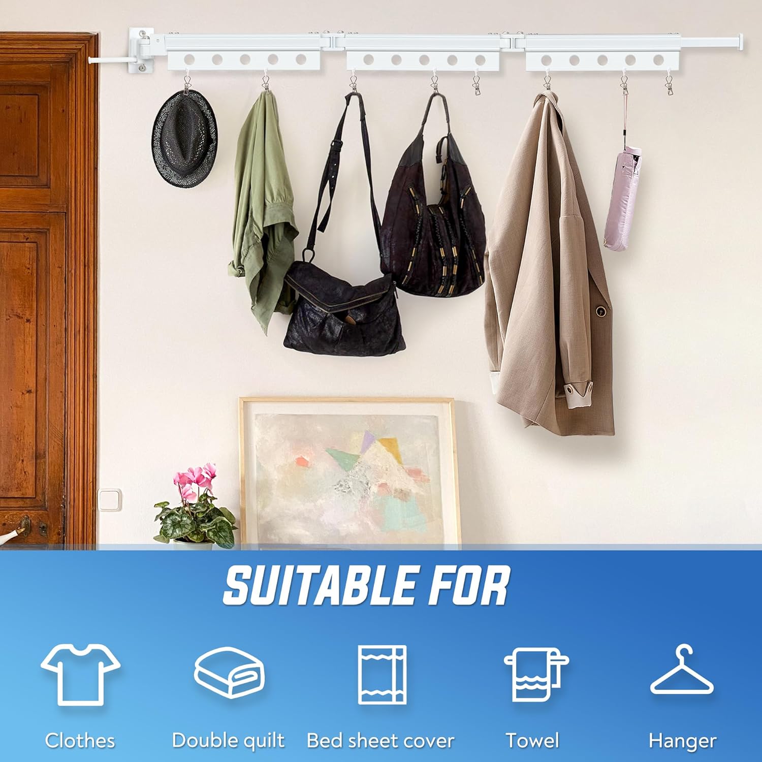 - Wall Mounted Clothes Drying Rack Foldable - 50.2 Inch Maximize Space with 3 Folding Sections and Hidden Telescopic Rod Ideal for Drying Shirts Towels Socks Hats Coats Suits Dresses and More Includes 10 Clothespins Compact Stylish Design for Laundry Room Organization