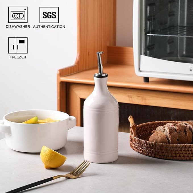 - Leak Proof & Keep Liquid Fresh - The bottle is made of durable ceramic that creates a smooth glaze. And the opaque porcelain bottle protects the oil from light and makes it last longer.