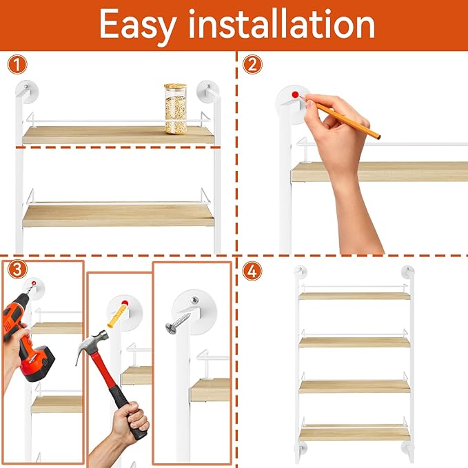 - EASY TO INSTALL: Our spice rack organizer is very easy to install. You just need to fix the product on the wall or door with the included screws. Detailed installation manual and installation tools are provided to help you complete the installation quickly. If you encounter any problems, please contact us and we will assist you to solve them.