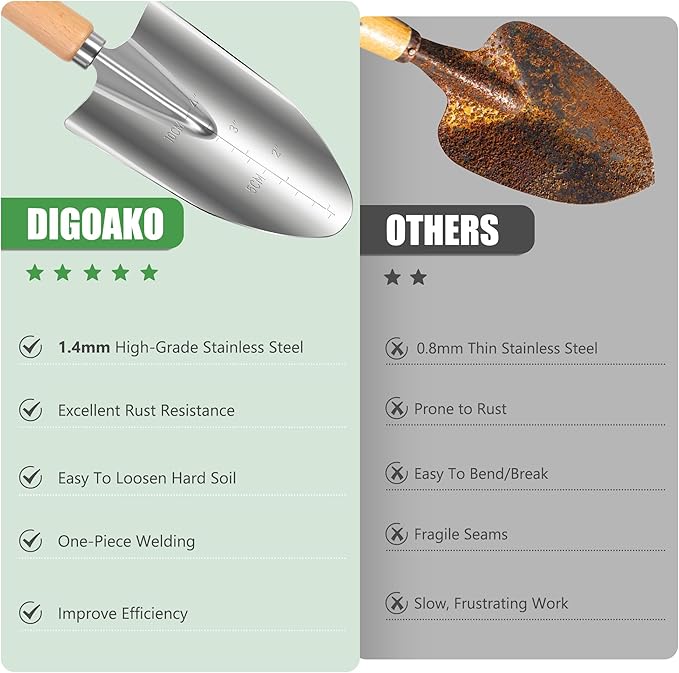 - 🛡️ [Stainless Steel Garden Tool Set] - Crafted with heavy-duty stainless steel, these garden tools resist rust, corrosion, and deformation—ideal for heavy soil, weeds, and year-round use.