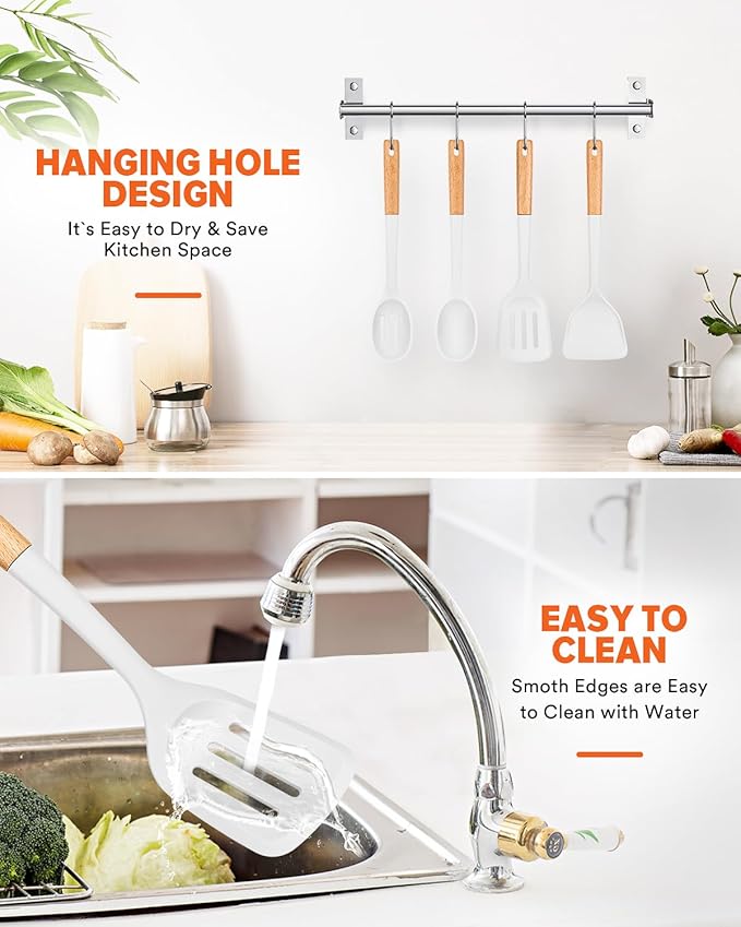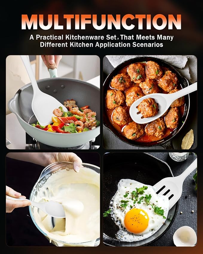 - Gentle on cookware: With smooth edges, our silicone Cooking Utensils protects non-stick cookware from scratches and damage