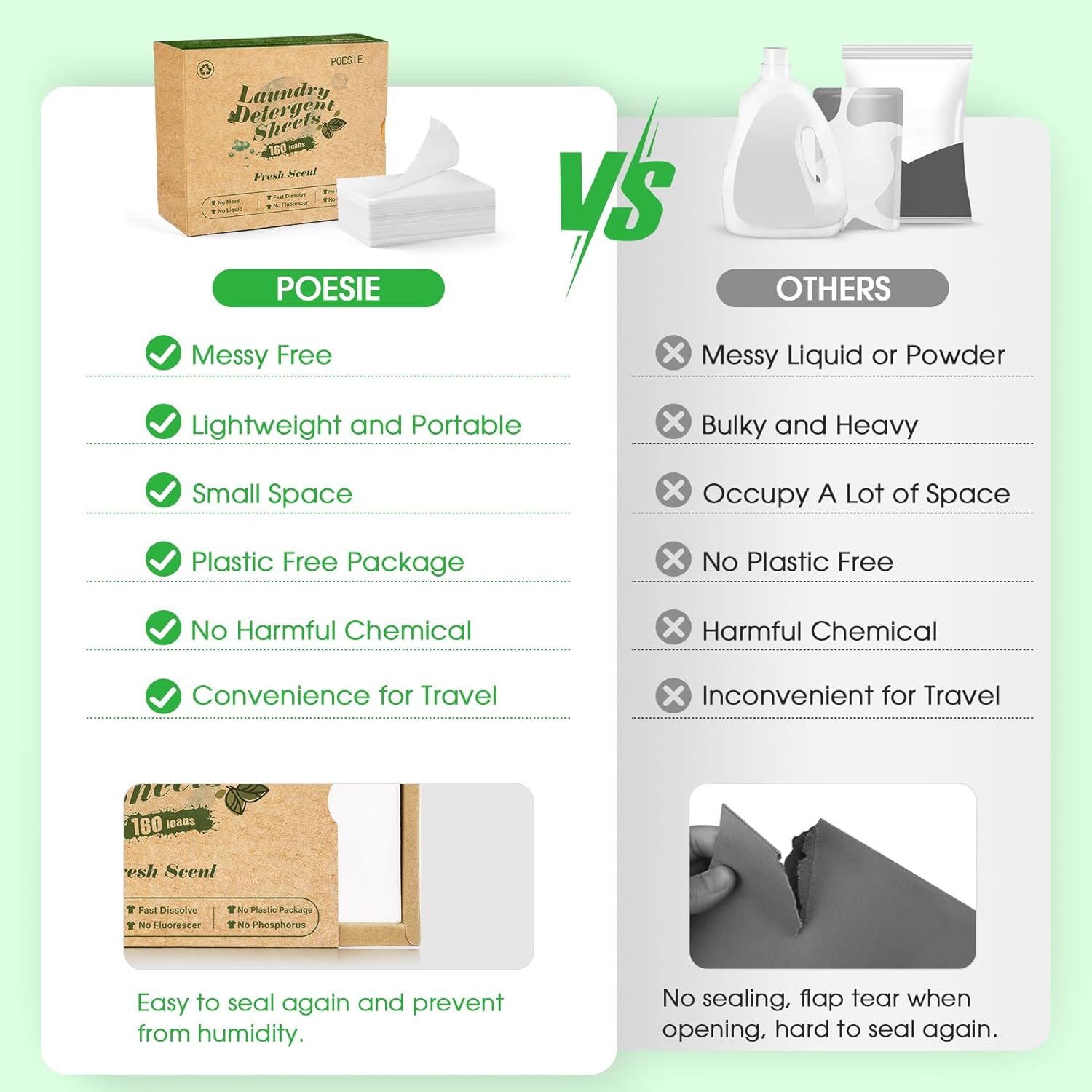 Poesie Laundry Detergent Sheets Fresh Scent 320 Sheet Liquidless Soap Sheets Detergent for Travel Camping Dormitory Hotel