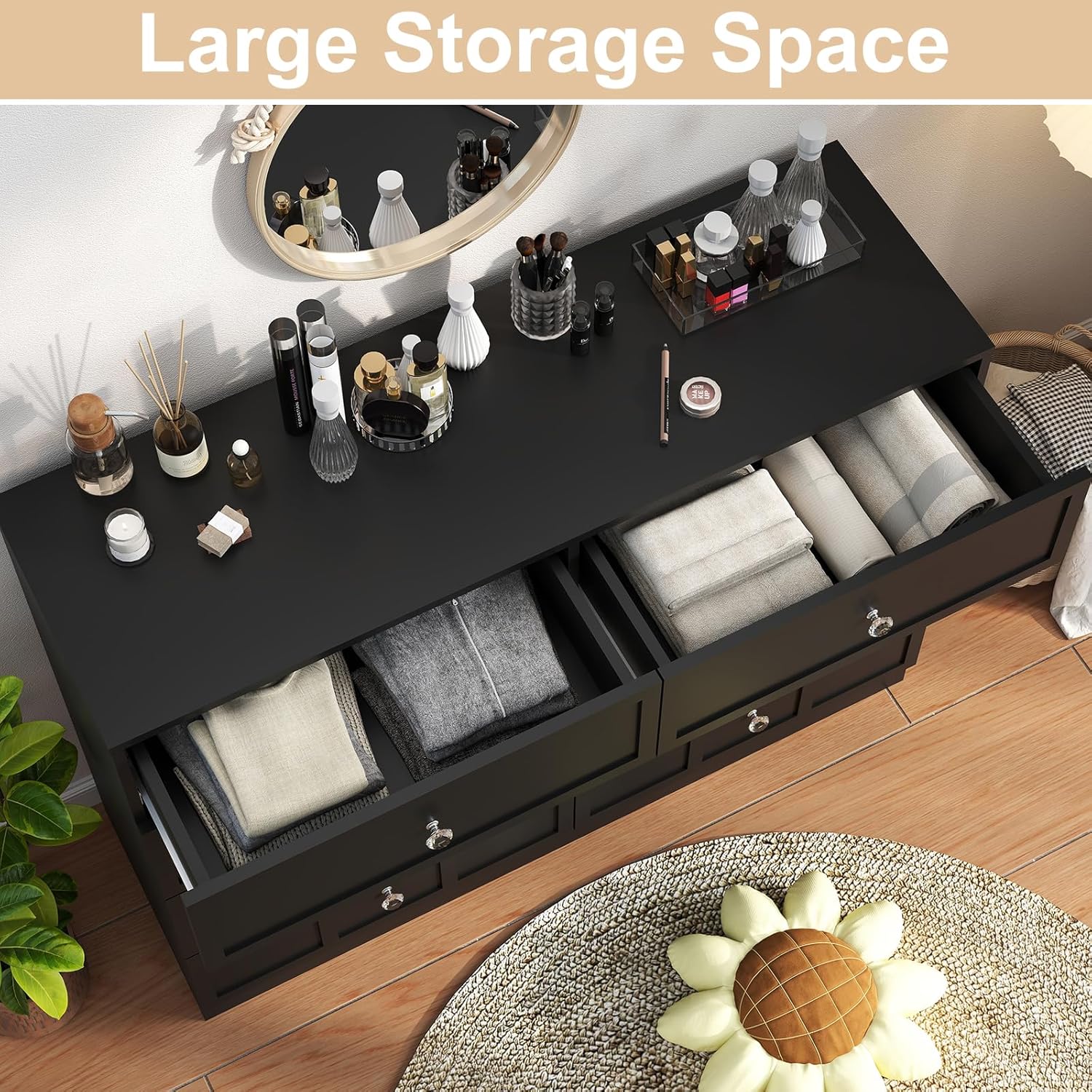 - Durable & Stable Construction Built to last, this black dresser 8 drawer for bedroom features premium ball-bearing drawer glides for smooth operation and exceptional weight capacity. Whether storing clothes, toys or office supplies, the black 8 drawer dresser wide maintains steadfast stability. The black 8 drawer dressers for bedroom retains its flawless performance and appearance even with daily use over time.