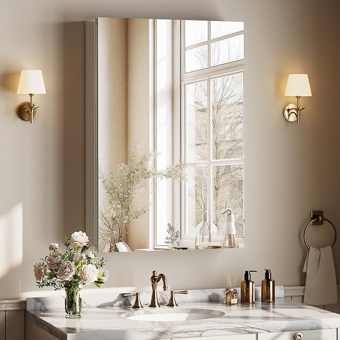 - Quiet Design: this Bathroom mirror Cabinet is made of aluminum alloy frame and fitted with high quality soft hinges to open and close the door without any obstruction, in addition, it is equipped with a damper to close the door safely, comfortably and noiselessly