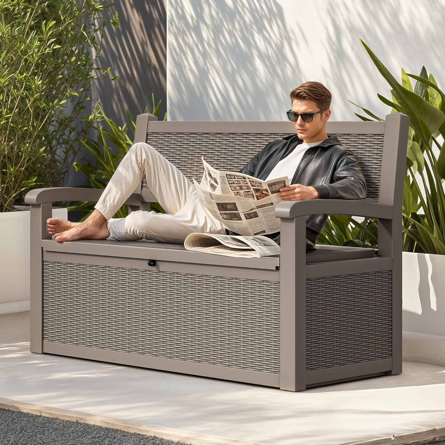 - Weatherproof Durability: Crafted from weather-resistant resin, this outdoor bench with storage resists rain, sun, and dust; Whether it's a stormy summer or a dusty fall day, this porch storage stands tough for long-lasting protection