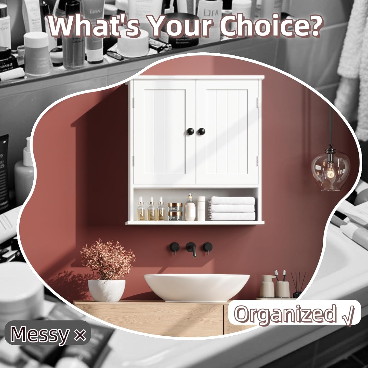 - Defy Humidity – Stay Pristine for Years! – Steamy showers? No problem! The wall cabinet moisture-proof MDF core + waterproof coating fights warping and stains. No more soggy shelves or peeling paint – just crisp white elegance.