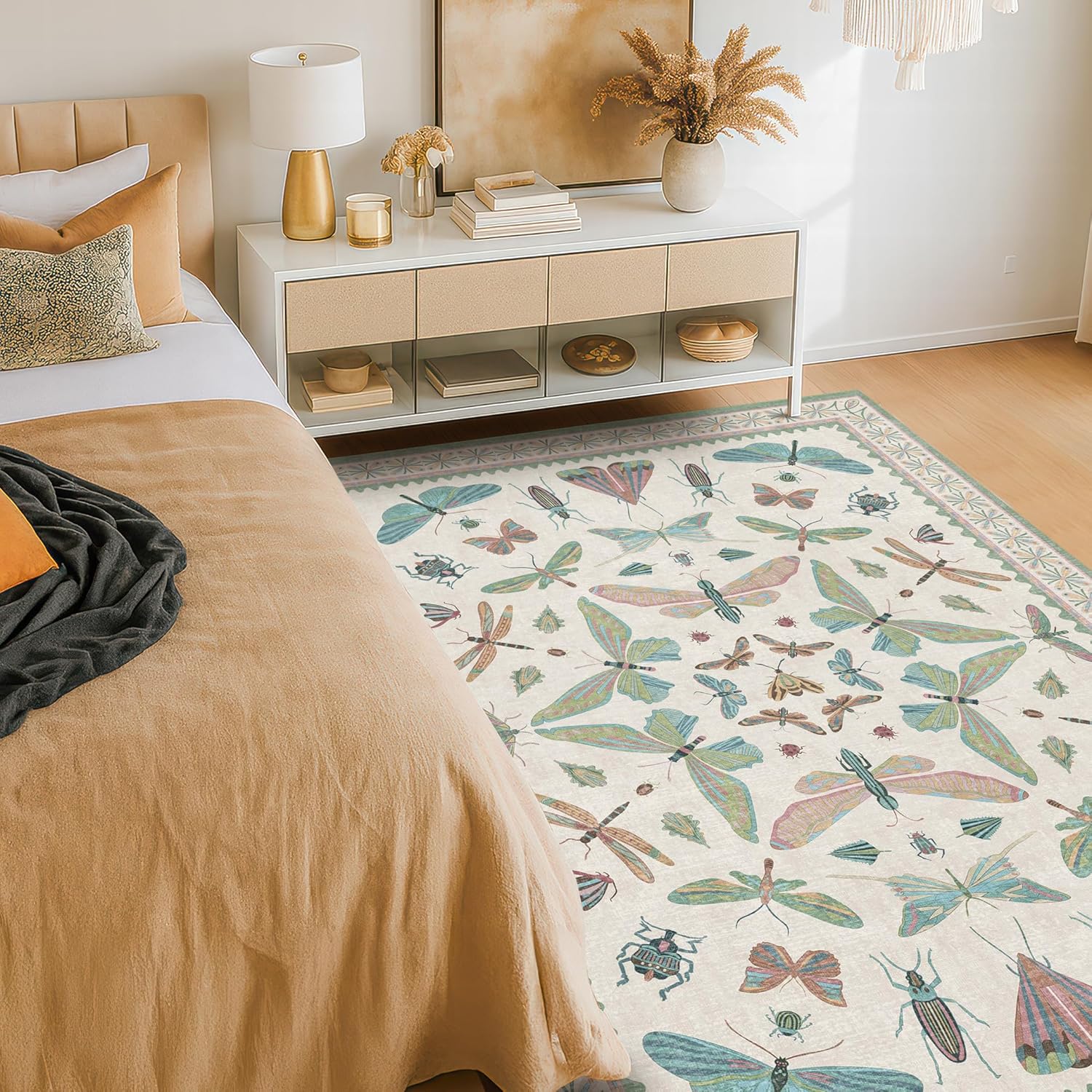- Playful Botanical Charm: Add whimsical elegance with delicate butterflies and moths on a soft ivory background. Muted sage green, dusty teal, blush pink, and vintage coral create a fresh, nature-inspired cottagecore palette. Featuring a symmetrical layout and scalloped edge echoing antique entomology prints, it blends vintage science with modern decor. Perfect for kids' rooms, nurseries, living room, or garden-inspired interiors to add personality and color