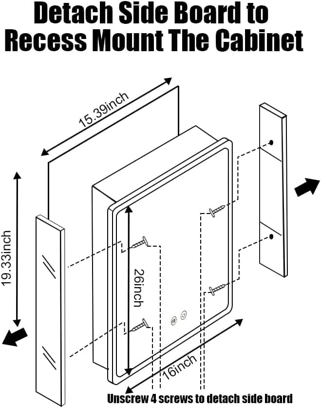 - [Detachable Side Plate for Recess Mount or Surface Mount]Designed for versatility, this mirror cabinet can be installed either recessed or surface-mounted, catering to your specific space and design preferences. Whether you want a flush, streamlined look or a more prominent, accessible placement, this cabinet adapts to your needs