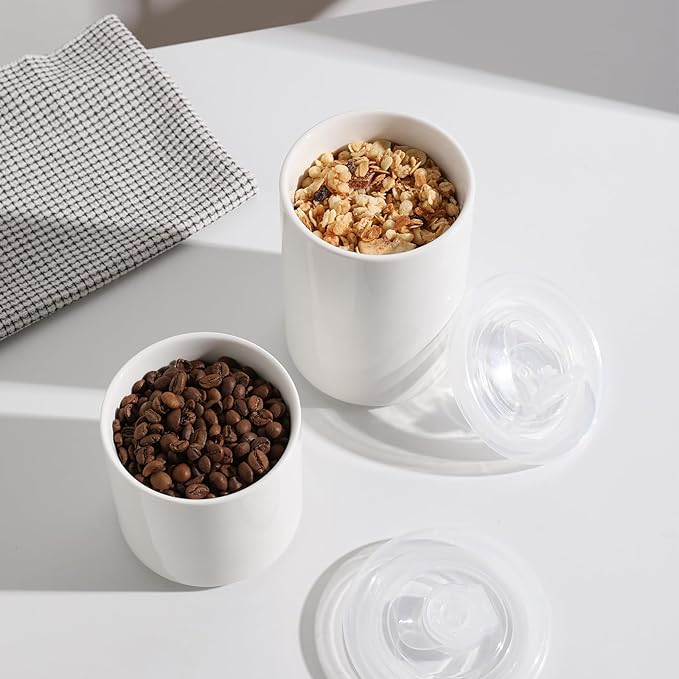 Sweejar Ceramic Food Storage Jar, Salt Container with Airtight Plastic Lid & Date Tracker, 16 Oz Kitchen Canisters for Flour, Rice, Sugar, Coffee, Spices, Pantry Organization (White)