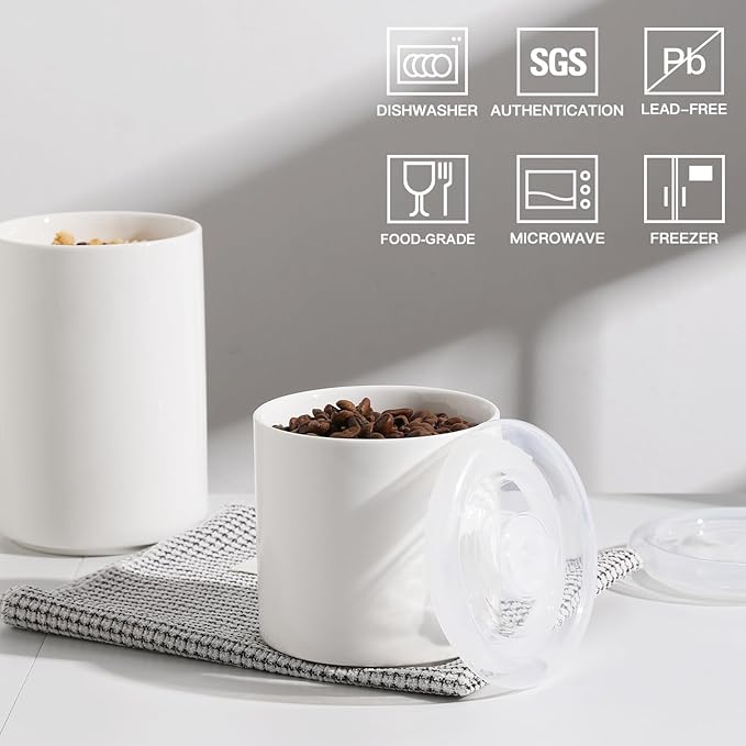 Sweejar Ceramic Food Storage Jar, Salt Container with Airtight Plastic Lid & Date Tracker, 28 Oz Kitchen Canisters for Flour, Rice, Sugar, Coffee, Spices, Pantry Organization (White)