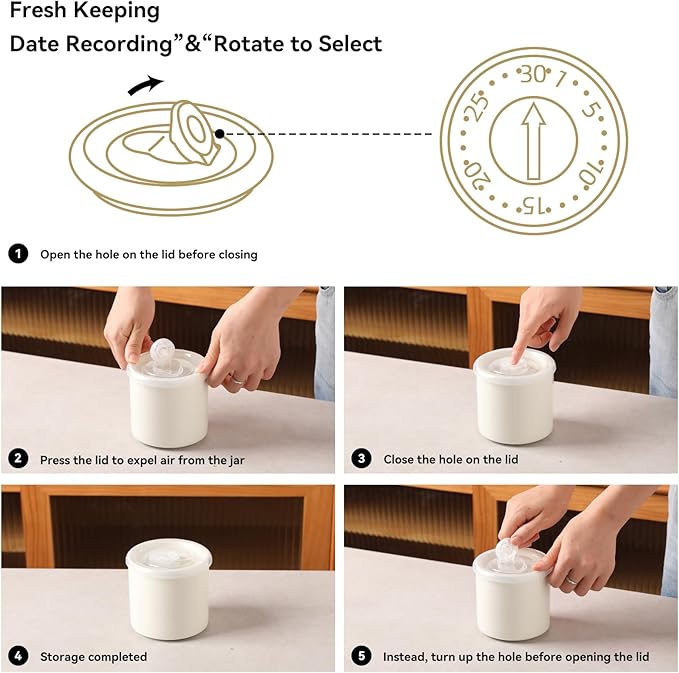 - Built-in Date Tracking System - The innovative rotating dial (MM/DD) on the lid can clearly mark the storage date at a glance. Use expiration reminders to reduce food waste. At the same time, flipping the dial can open or close the air holes, which is conducive to the preservation of the items inside and enhances the tightness of the cover.