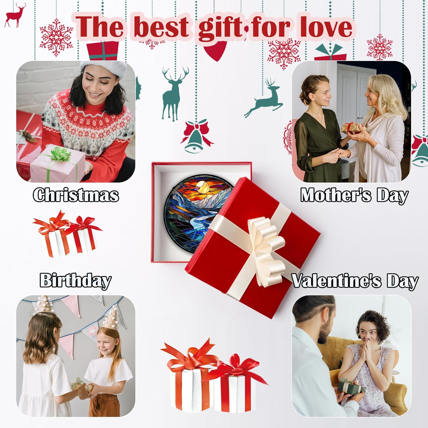 Stained Glass Window Hanging, Canyon Mountains Sunset View Sun Catcher for Window Home Decor Landscape Suncatcher Mother's Day Birthday Gifts for Women Men Mom and Nana 6.3 in