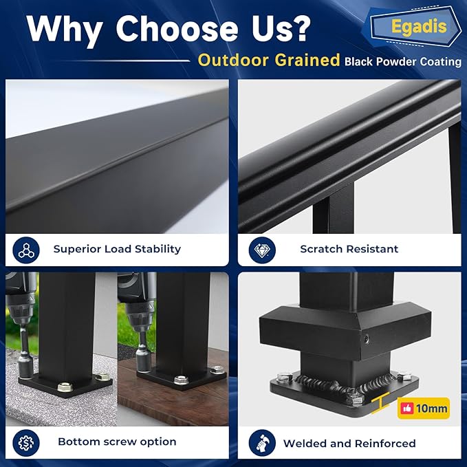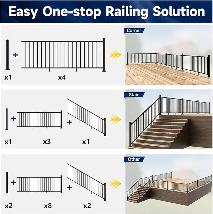 - Enhanced Stability for Maximum Safety: Built for superior sturdiness, this railing kit ensures reliable support for children, the elderly, and pets. The robust 10mm-thick post base plate provides a solid foundation, minimizing shaking or wobbling, delivering peace of mind for your family.