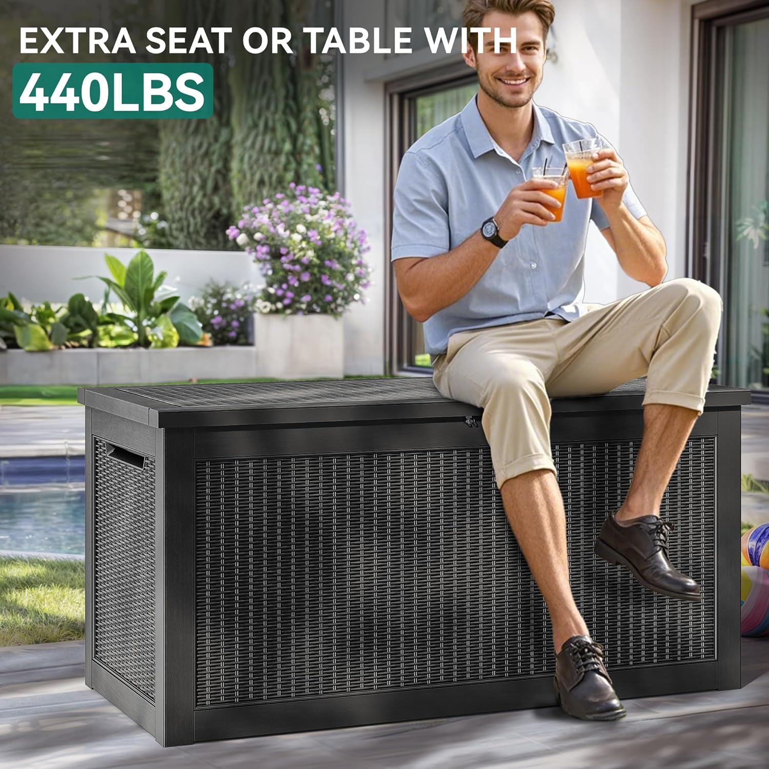 - Extra Seating or Table: The extra large outdoor storage deck box doubles as a comfortable bench seat with a weight capacity of 440pounds; Ideal for large patio gatherings or as a resting spot after yard work
