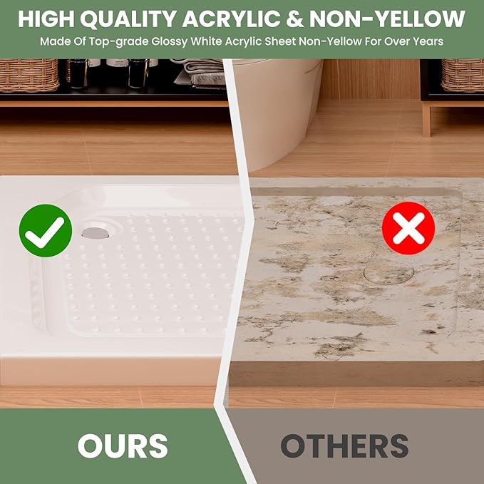 - Solid Construction:Built with a 5-layer structure, this shower base offers superior weight endurance and long-lasting durability. The multi-layer design enhances stability, making it capable of supporting daily use without warping or cracking, even under consistent pressure.