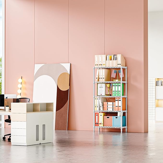 IZEUK 5 Tier White Metal Storage Shelves, Heavy Duty Wire Shelving Rack for Garage, Kitchen, Bathroom, Laundry, or Closet Organization, 1250 lbs Capacity, 11.8" D x 29.5" W x 59.5" H