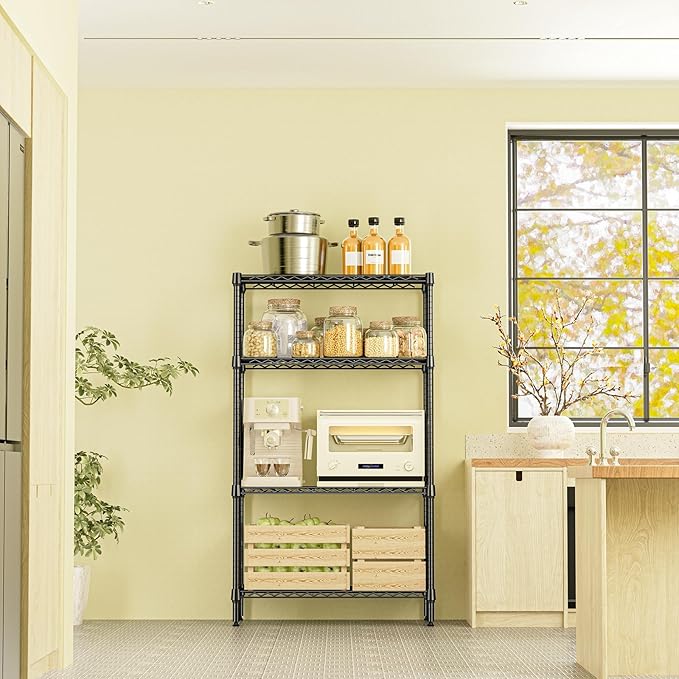IZEUK 4 Tier Black Metal Storage Shelves, Heavy Duty Wire Shelving Rack for Garage, Kitchen, Bathroom, or Laundry Organization, 1000 lbs Capacity, 13.8" D x 35.4" W x 59.5" H
