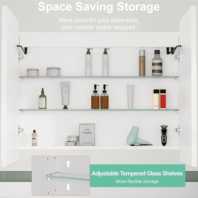 - 【Surface & Recessed Mount】Mirror cabinet can be surface mount/wall mount or recessed mount, depending on your preference