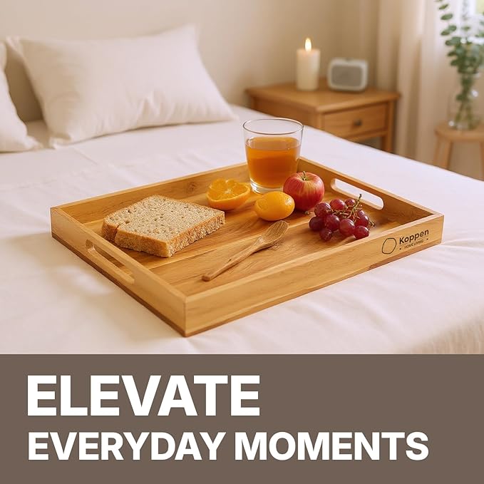 - [VERSATILE ACROSS SPACES AND OCCASIONS]: Whether you’re serving breakfast in bed, styling a coffee table, organizing your countertop, or setting up a charming outdoor picnic—this tray does it all with quiet elegance. Its timeless design moves effortlessly between rustic kitchens, modern living rooms, or cozy patios, making it as functional as it is beautiful.