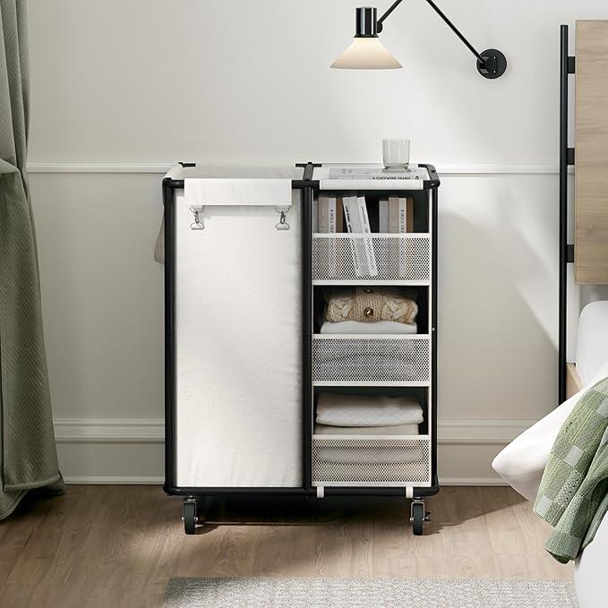 - Steel-frame Structure: The unique steel frame design makes the structure of the laundry basket more robust and sturdy. Steel frame is with powder coated finish, rust resistance and sturdy, 2 bottom steel pipes ensures the load bearing. The laundry basket cart is easy to assemble, and will be under strict quality inspection before it go to your door side