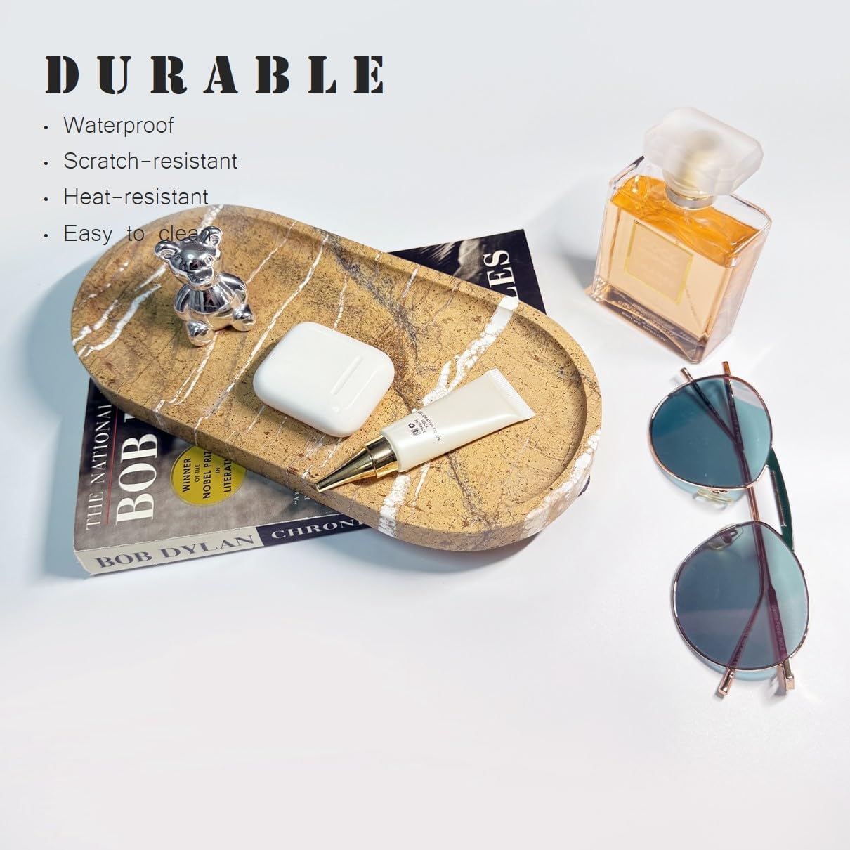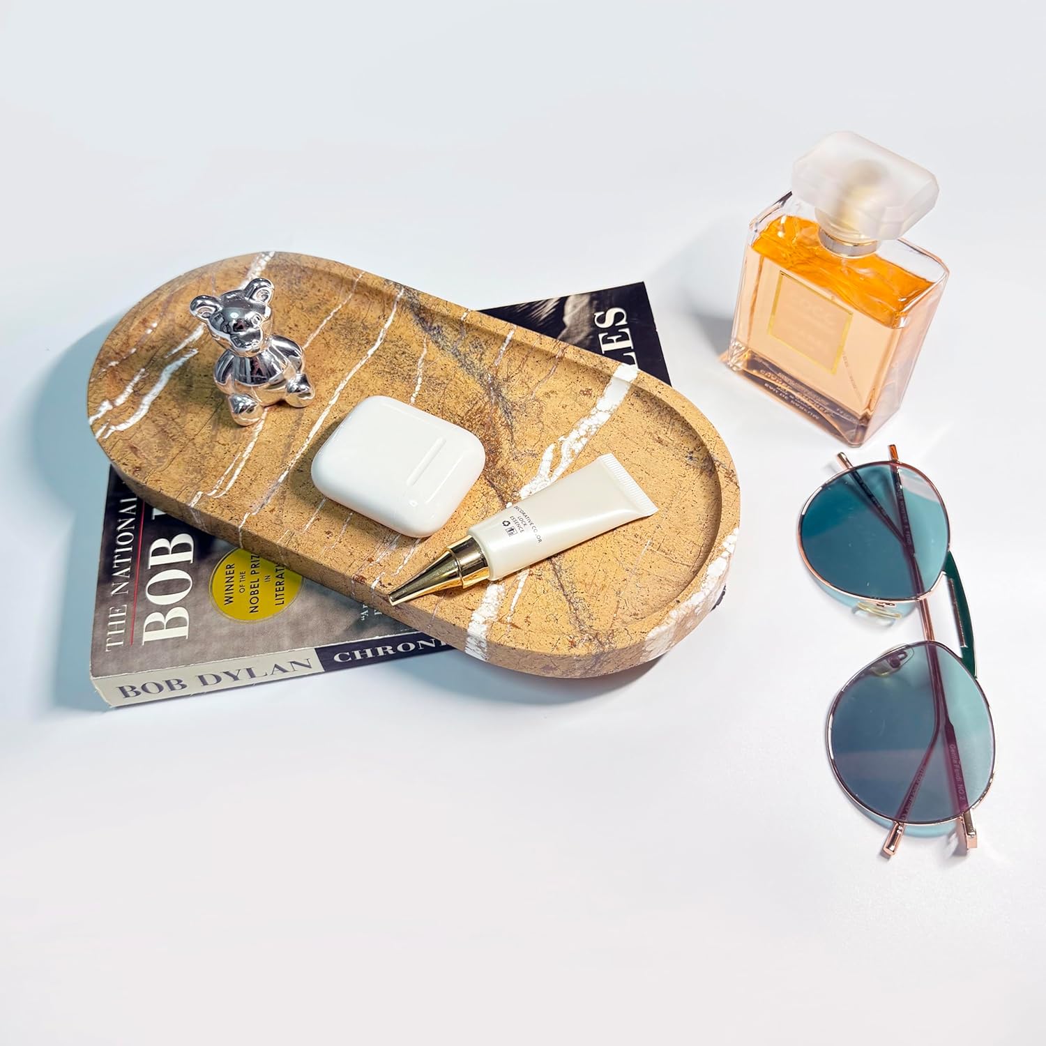 - MULTI-PURPOSE SIZE 10X5 INCHES: This vanity tray fits perfectly in any room. Use it as a bathroom tray for toiletries, a perfume display stone tray, a coffee table stone tray for décor, a nightstand stone catchall tray for keys and remotes, or an entryway catchall tray to keep essentials organized