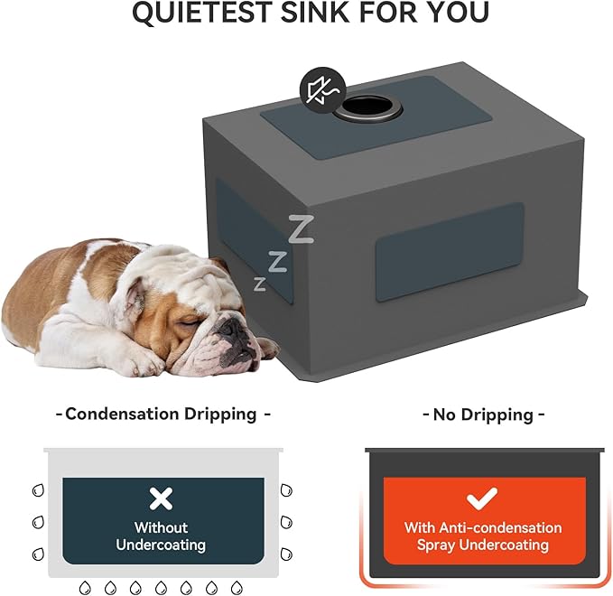 - SUPERIOR SOUNDPROOFING: Ultra-quiet NoiseDefend tech with thick silencer pads to eliminates noise and vibration. heavy paint coating underneath can prevent sink condensation and well protect your cabinet base from damage