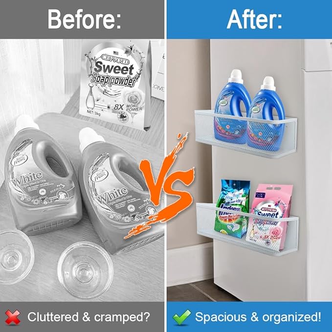 - Space-Saver for Small Areas -- Fits cramped laundry rooms, apartments, or kitchens. Stores detergent, dryer ball, sponges, dryer sheets, and more—clutter gone!