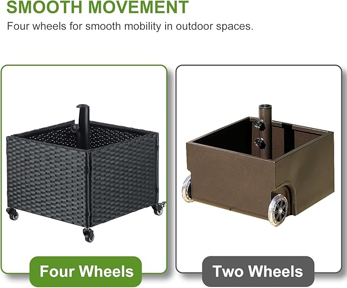 - Umbrella Stand with Wheels: Equipped with 4 smooth-rolling wheels, including 2 locking wheels, this fillable umbrella stand can be easily moved anywhere you want. And the wheels are tear resistant and non-slip, ensuring smooth and silent sliding