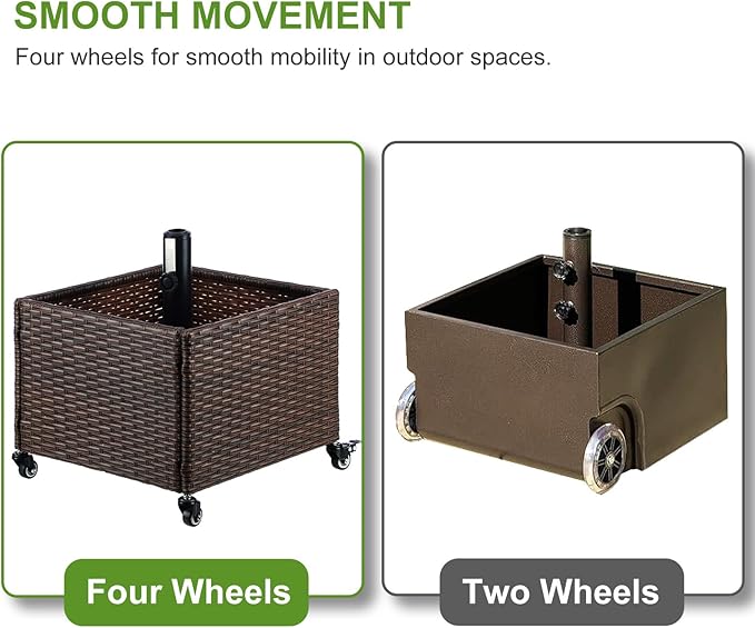 • Fillable Umbrella Planter: The 2-in-1 umbrella base stand with a fillable planter for growing flowers, herbs or adding gravel, sand. Each umbrella base comes with a nonwoven fabric liner that separates wicker from the filler