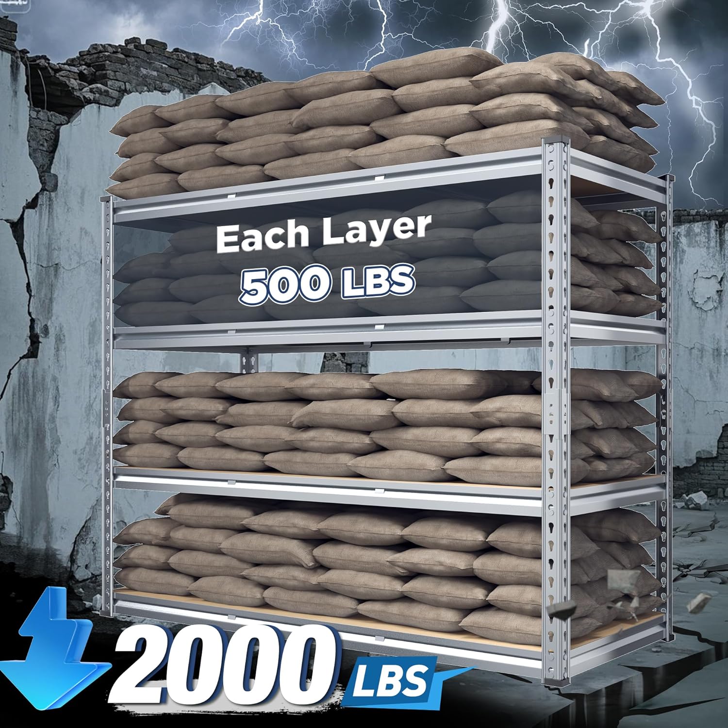 REIBII Garage Shelving, 4 Tier Storage Shelves Load 2000LBS, Adjustable Garage Shelving Heavy Duty, Metal Shelves Unit for Basement, Warehouse, 48" W x 60" H x 18" D, Galvanized