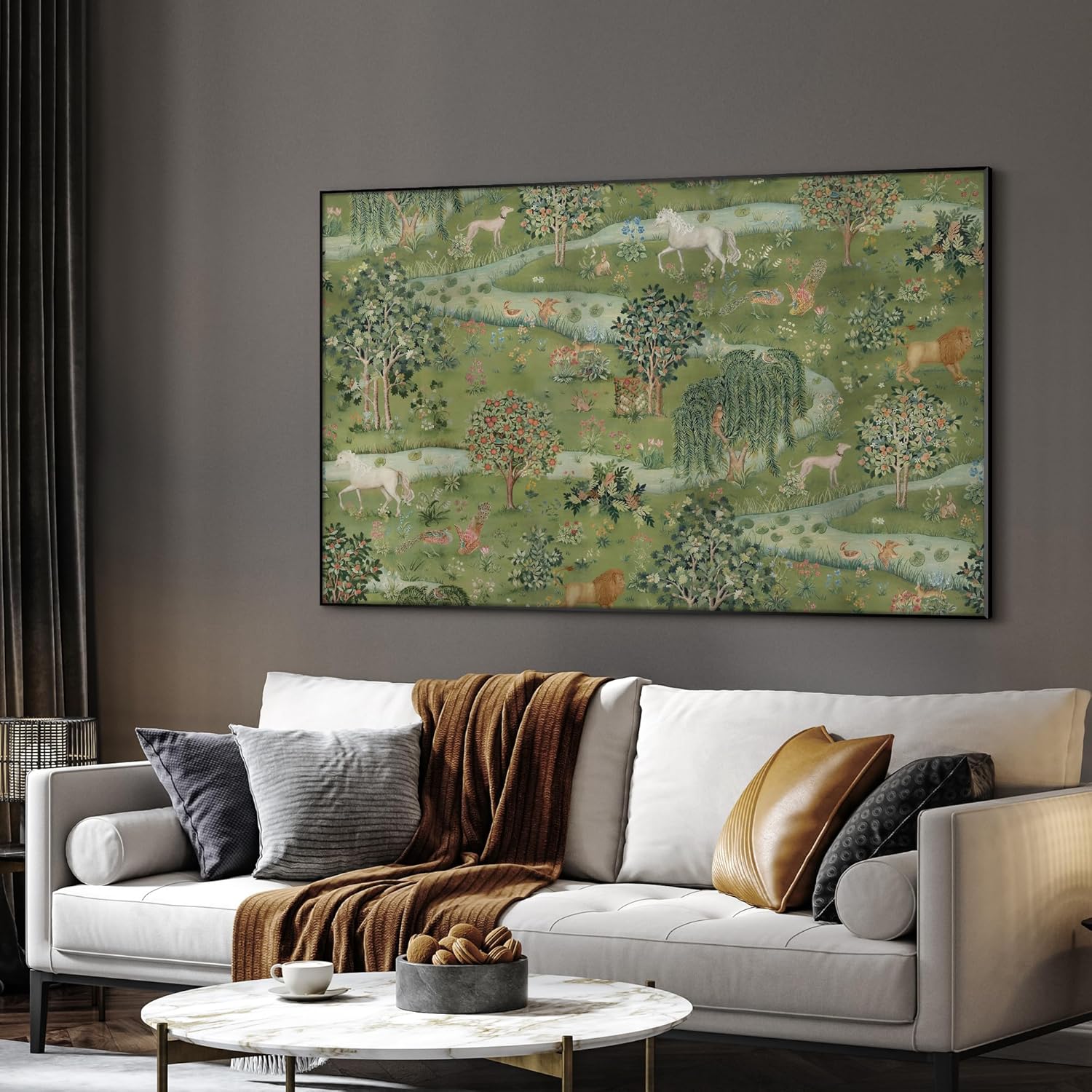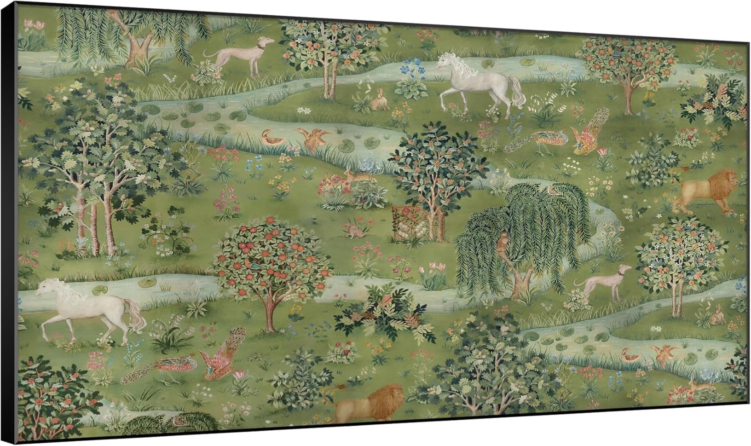 SIGNWIN 30"x60" Extra Large Framed Wall Art Medieval Fantasy Forest with Woodland Animals, Storybook-Inspired Scene for Home Living Room Bedroom Decor (Frame Assembly Required)