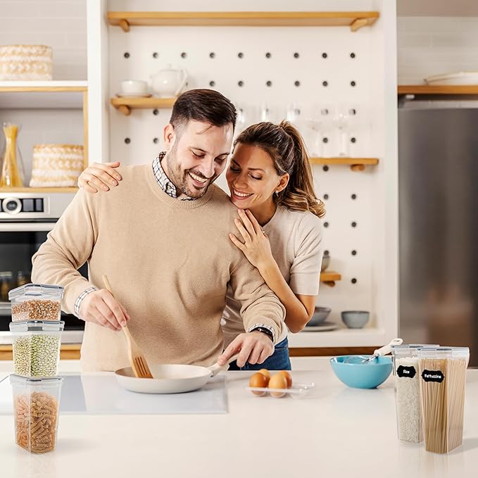 Airtight Food Storage Containers Set - 14 Piece Pantry Kitchen Organizers and Storage Set with Lids, Cabinet Organizing Canisters for Cereal, Flour, Sugar, Dry Foods - with Labels and Marker