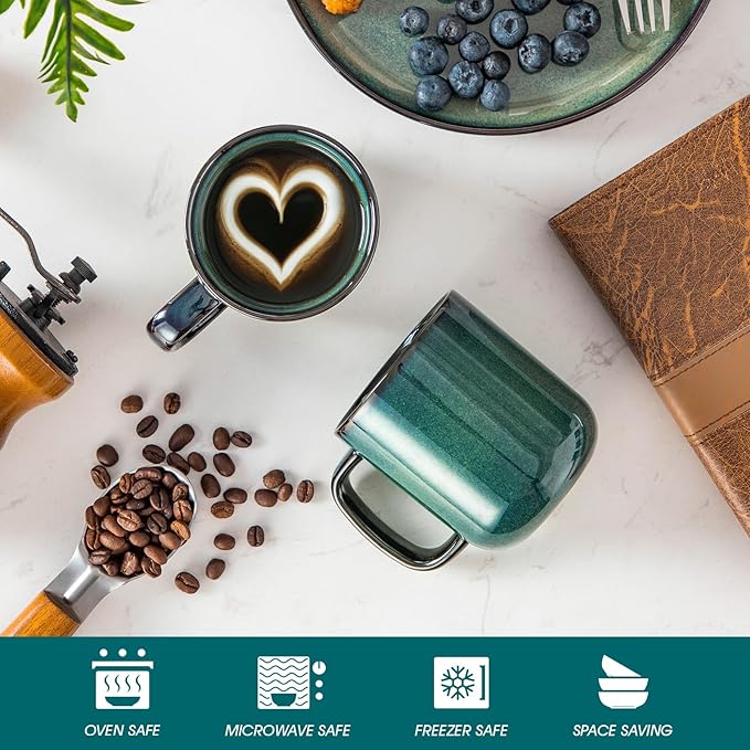 vancasso STARRY Coffee Mugs Set, 12 oz Ceramic Coffee Cups for Latte Hot Tea Cappuccino Cocoa Milk Stoneware Cups Set of 6, Dishwasher & Microwave Safe, Green