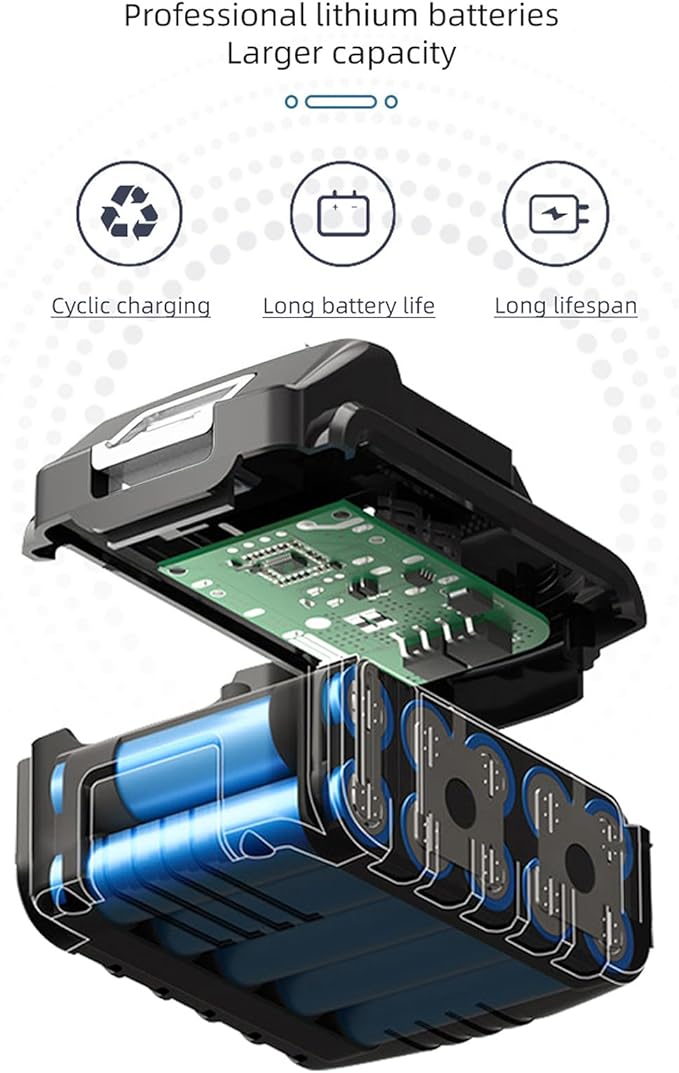 - ➤【Built-in LED Light and Smooth Trigger 】LED Lighting & Smooth Trigger Control. The built-in LED work light provides extra illumination in dim environments, making it especially useful for working at night or in tight corners, ensuring you can operate accurately under any conditions. The trigger design is responsive, allowing you to precisely control the tool’s speed based on the pressure applied, facilitating more detailed work.