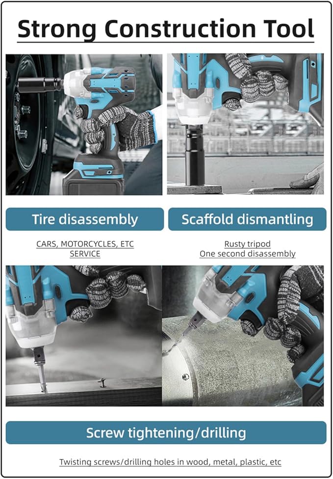 - ➤【3-in-1 Multifunctional Impact Wrench】The Impact Wrench also serves as an impact drill and screwdriver, making it versatile for various working situations.