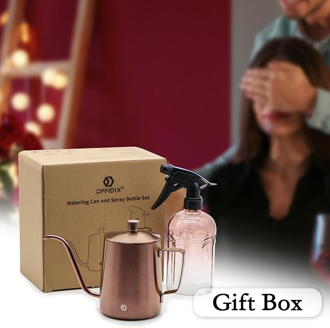 - 【Size and Capacity】The watering can is the ideal indoor plant watering can for plants around your home.Every package includes a 21oz/600ml stainless steel watering can and 14 oz /400ml plant mister spray bottle. The combination of the watering can and glass spray bottle can better meet your needs. The watering can and plant mister unique design is ideal as gift for house plant lovers.