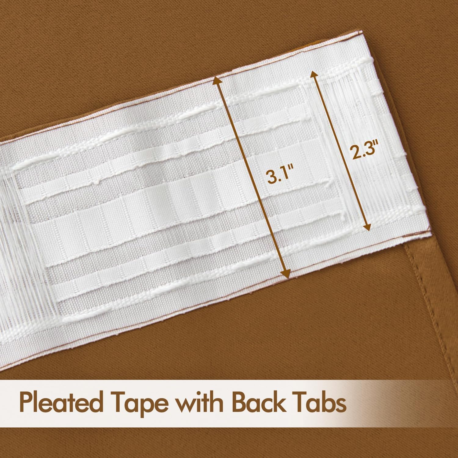 MIULEE Golden Brown Back Tab Blackout Curtains 84 Inch Length 2 Panels Set for Living Room Bedroom Privacy, Rod Pocket/Pinch Pleat Thermal Insulated Room Darkening Pleated Light Blocking Drapes