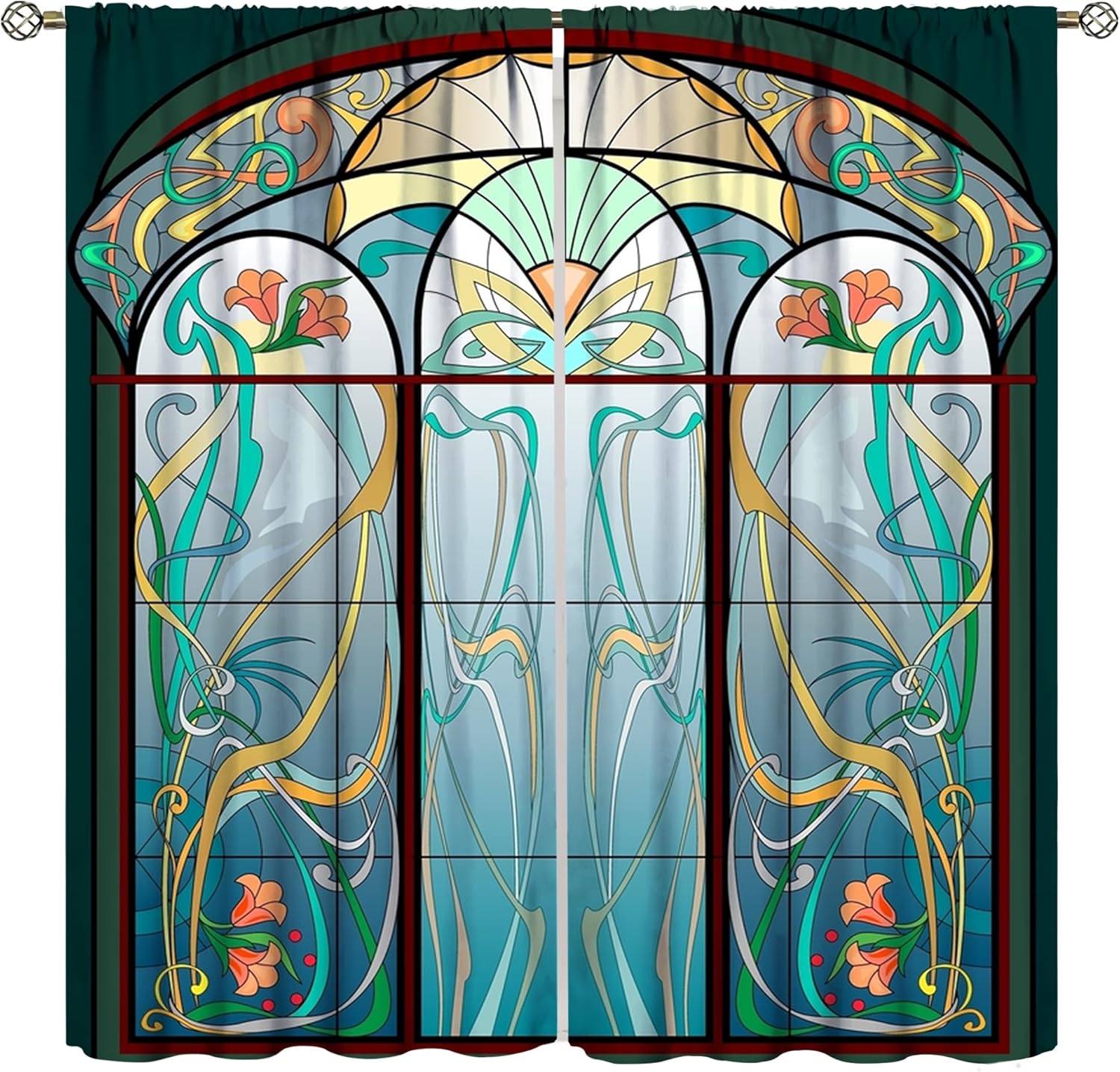 Stained Glass Curtains, Retro Mid Century Boho Abstract Art Home Decor Drapes for Bedroom Living Room Kitchen Window Treatment 2 Panels Set Total Size 42" W X 45" L Inch