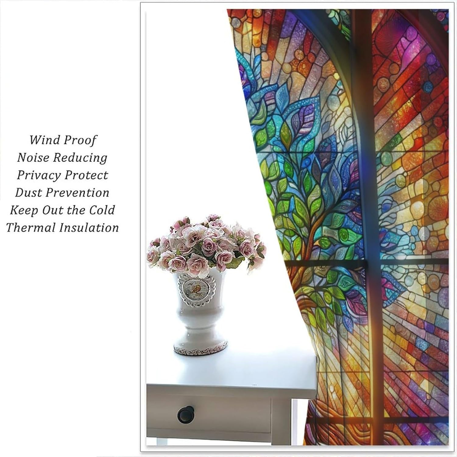 Stained Glass Curtains,Tree of Life Colorful Abstract Art Home Decor Drapes for Bedroom Living Room Kitchen Window Treatment 2 Panels Set Total Size 63" W X 63" L Inch