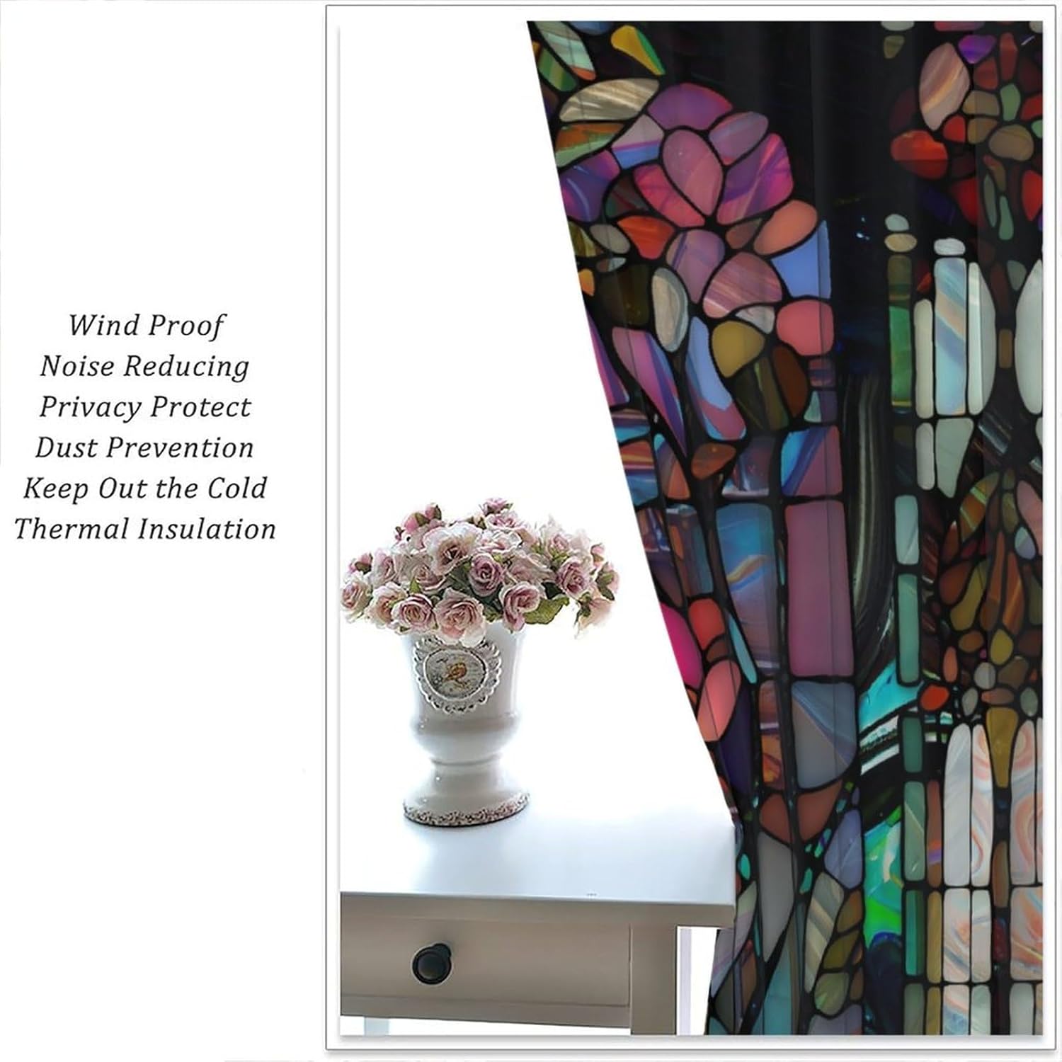Stained Glass Curtains,Vintage Colorful Abstract Art Home Decor Drapes for Bedroom Living Room Kitchen Window Treatment 2 Panels Set Total Size 72" W X 63" L Inch