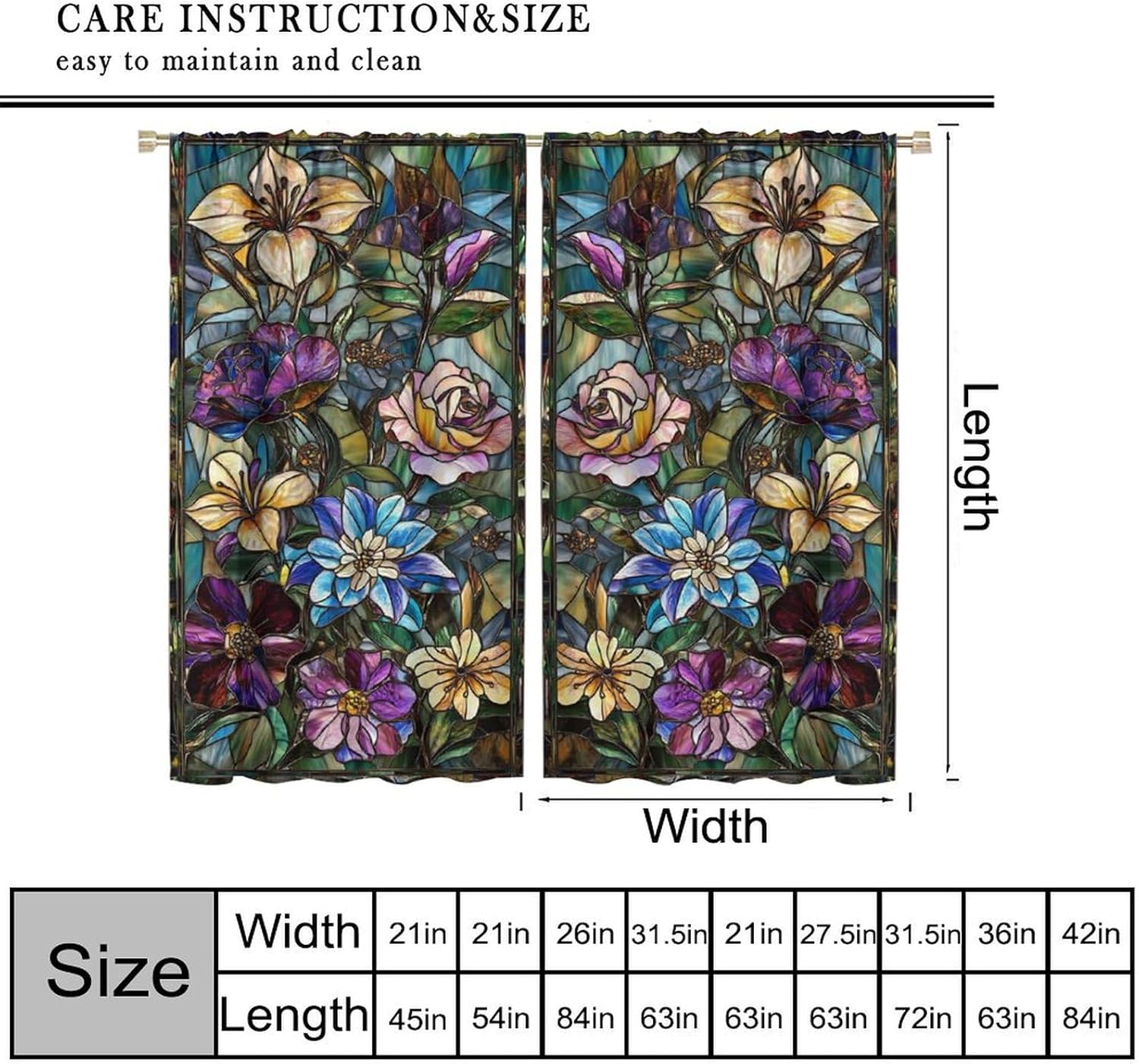 Stained Glass Curtains,Retro Colored Glass Flowers Art Home Decor Drapes for Bedroom Living Room Kitchen Window Treatment 2 Panels Set Total Size 52" W X 84" L Inch