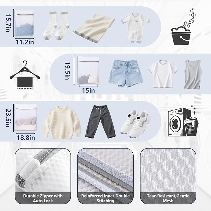 - 【Large capacity】The capacity of WELIDAY laundry backpack is big enough for holding 2-3 loads of laundry. Perfect capacity for laundromat, college or family use. Size: 13x13x30.7 inches. Comes with 3 mesh wash bags of different sizes, precisely adapted to all kinds of daily clothes, gently protecting the fabrics, folding lightly, wash whenever you go