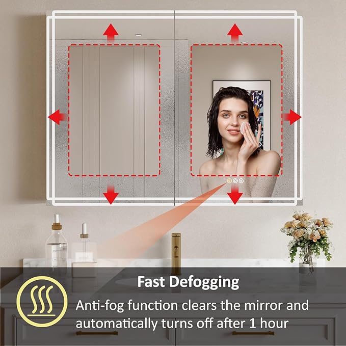 - Anti-Fog & HD Mirror: Equipped with a built-in anti-fog system, the mirror stays clear even after hot showers. Made with a 4mm high-definition, eco-friendly glass mirror, it delivers a sharp, true-to-life reflection while being safe and durable for daily use