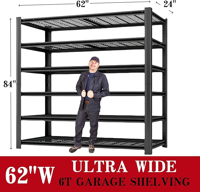 6T 62" W x 24" D x 84" H Garage Shelving Heavy Duty Metal Shelving 4200LBS Storage Shelves Adjustable Metal Shelves for Storage Industrial Garage Shelves for Warehouse Basement