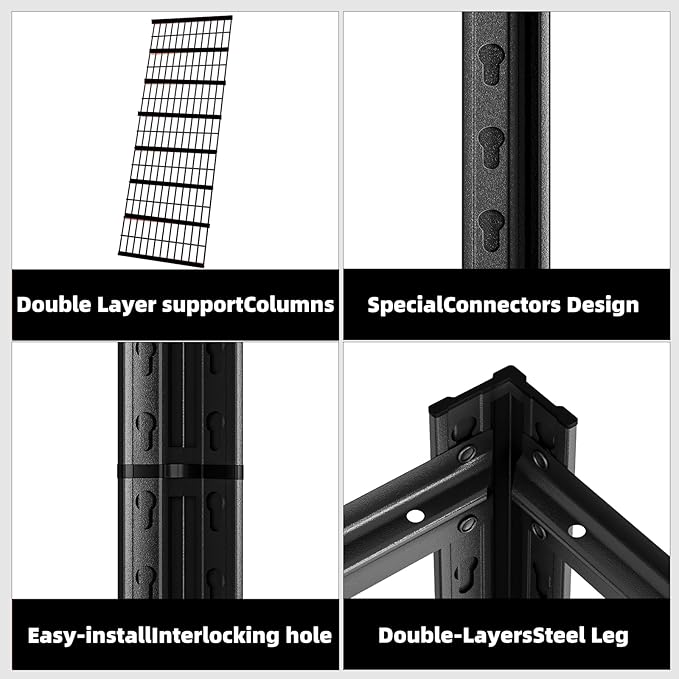 - 【Easy Assemble within 10 Minutes】The metal shelves for garage storage adopts a special interlocking design to make it quickly assembled. To help you quickly assemble, we offer you a hammers and a pair of gloves. There is no nuts or bolts required, you can quickly assemble every stand alone sturdy shelves for storage within 10 minutes