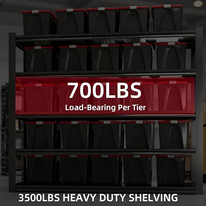 - 【3500LBS Capacity Heavy Duty Garage Shelves】LI JIU HOME's heavy duty garage shelving unit has thickened double metal legs. Made of high-quality metal, each solid thickened metal shelving with 9 big ribs beneath can hold up to 700 lbs, with a total bearing capacity of 3500 lbs, which makes industrial garage shelves heavy duty more stable and solid than normal metal shelves for storage and more stuff can be stored