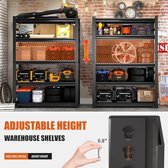 - 【All-Steel Shelves for Maximum Stability】 Constructed entirely with high-quality steel shelving, these metal shelves resist bending/warping. The robust garage shelf rack design secures heavy tools and equipment with unwavering stability.