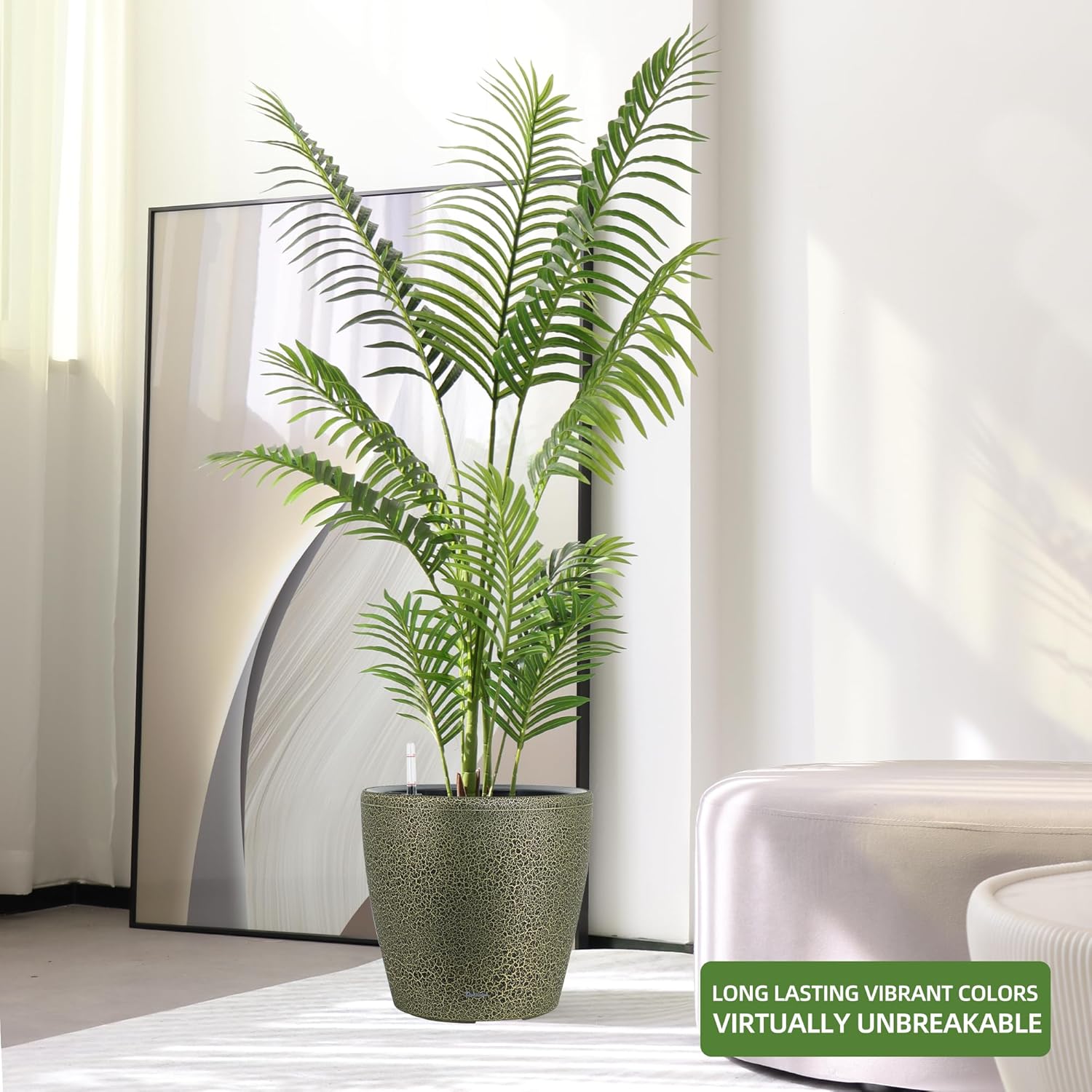 Dexceder 18x17 Self Watering Planter with Wheels Indoor Outdoor, Inner Pot Design, Thickened Large Floor Standing Flower Plant Pot with Water Level Indicator (Black Gold Crackle)