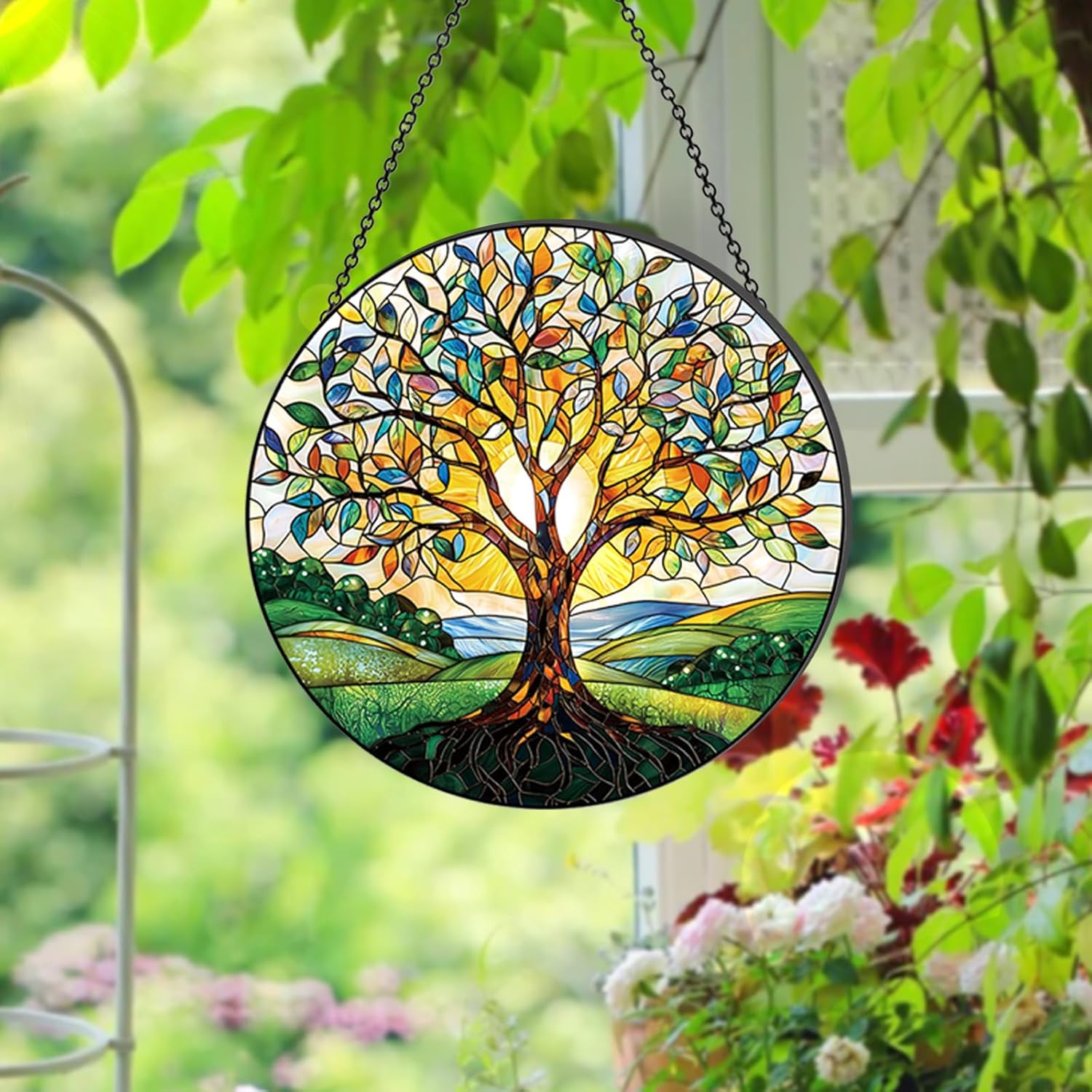 - Exquisite Design: Finished with vibrant stained glass, this Tree of Life suncatcher captures sunlight beautifully, adding warmth to any space